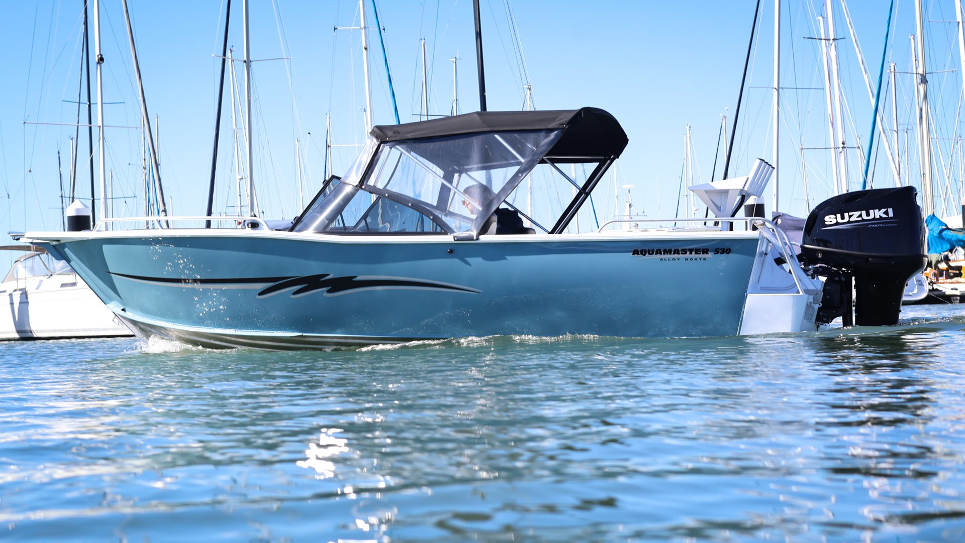 The Aquamaster Bow Rider series is a great all round family and fishing vessel. This is an ideal multi-use craft with its’ raised sheer line, large spray chines and wide open cockpit space. Whether you like fishing, skiing, cruising or simply taking the kids for a family picnic out in the harbour, you can do it all in a roomy Aquamaster Bow Rider.